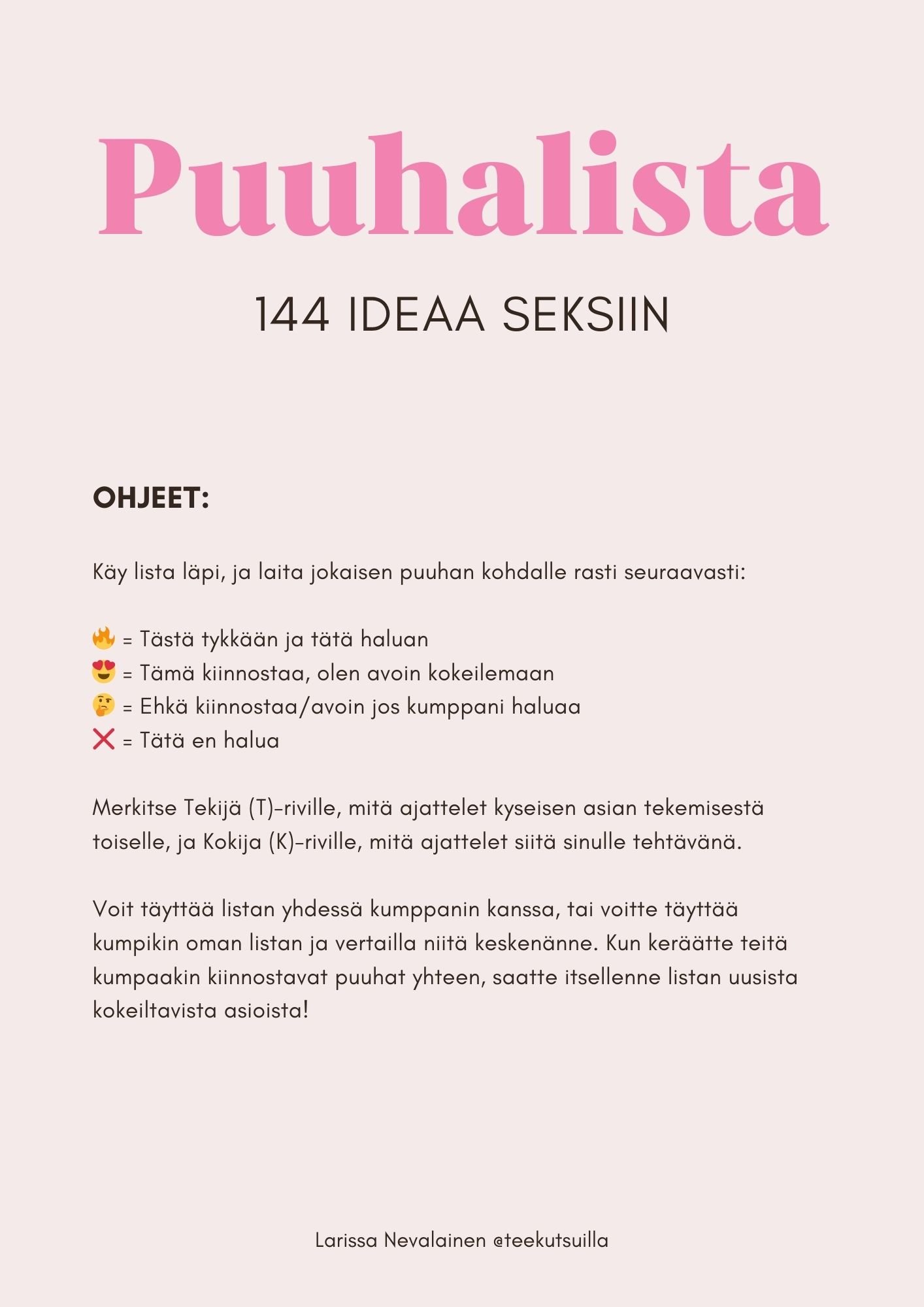 144 ideaa seksiin – nyt loppuu se lähetyssaarnaajan jyystäminen!